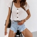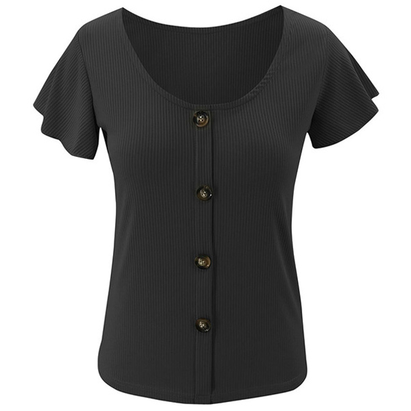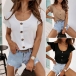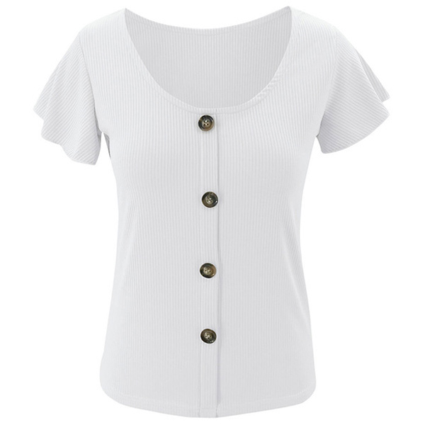 Your wardrobe calls for a simple,cozy,stylish and all-match t-shirt. So why not make your eyes focused on this piece? It boasts a solid color,with short sleeve,round neck and front-button design,this piece not only can ensure the comfy,but also can maintain your style.