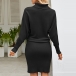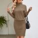 Simple Solid Color Turtleneck Long Sleeve Ribbed Sweater Dress