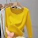 Simple Solid Color V-neck Long Sleeve Plush Lined Basic Shirt