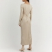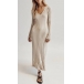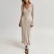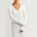 This timeless midi dress offers a chic and versatile option for your wardrobe. Crafted with a classic V-neckline and long, figure-flattering sleeves, this ribbed dress exudes a sophisticated, elegant aesthetic.