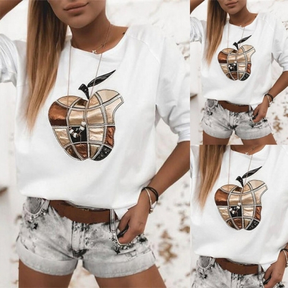 Your wardrobe calls for such a simple,cozy yet stylish t-shirt. It is crafted from soft and breathable fabric,finished with long sleeve and round neck design,this t-shirt can give you a long-lasting comfort with its soft and breathable fabric. Moreover,the apple pattern design will add some extra charm. So why not buy one?