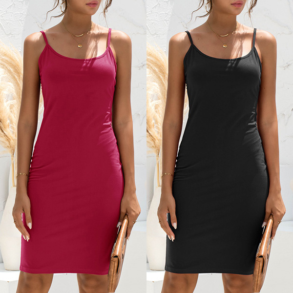 Simple Style Backless Solid Color Slim Fit Sling Tight Dress