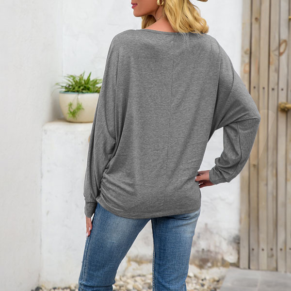 Crafted from soft and breathable fabric,with a loose silhouette design,this t-shirt is sure to offer you a comfortable day. Solid color style,the dolman sleeve design will add some extra charm. If you wanna look more stylish,you can consider adding a sparkle necklace to enrich your overall dress up.