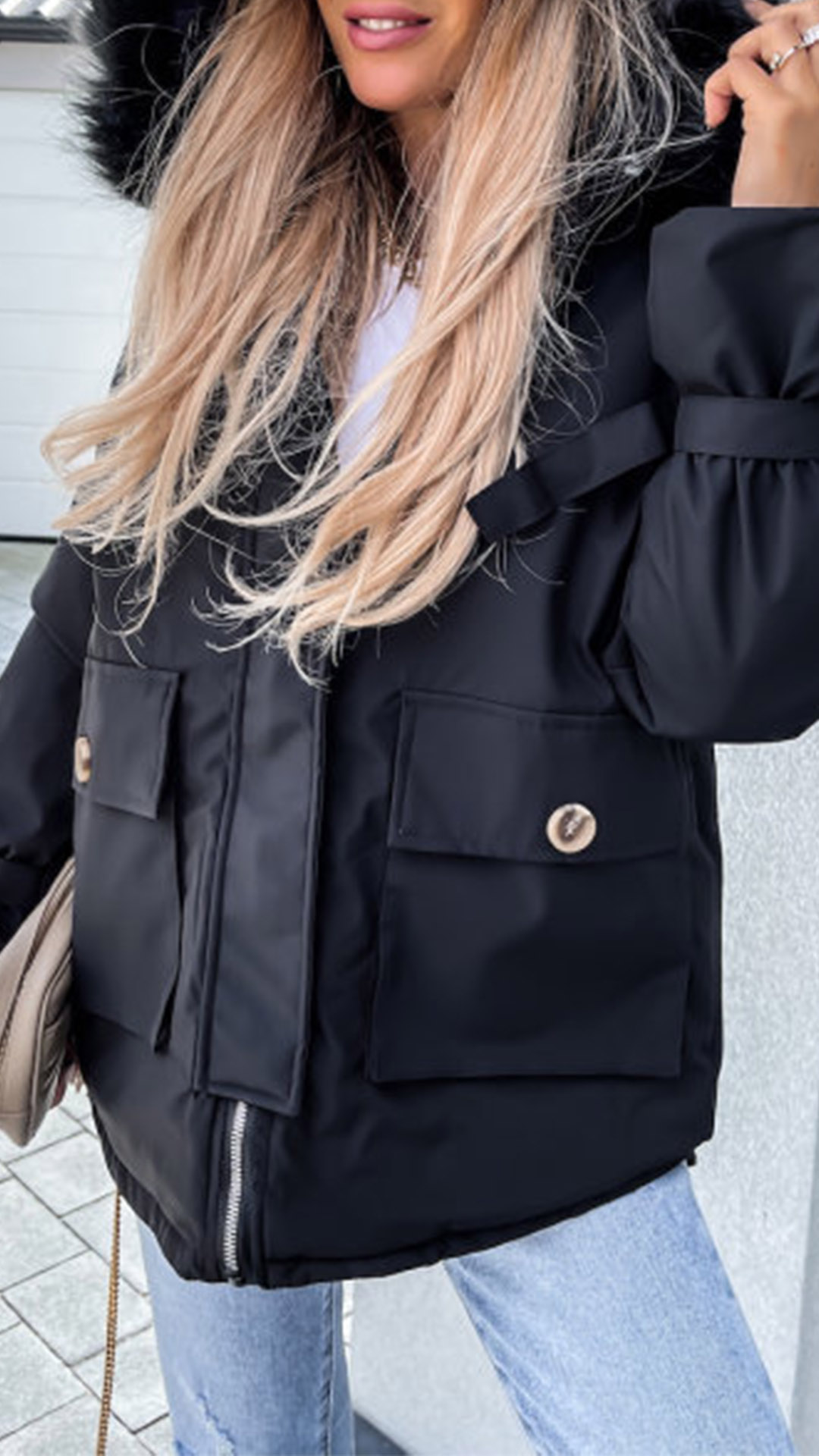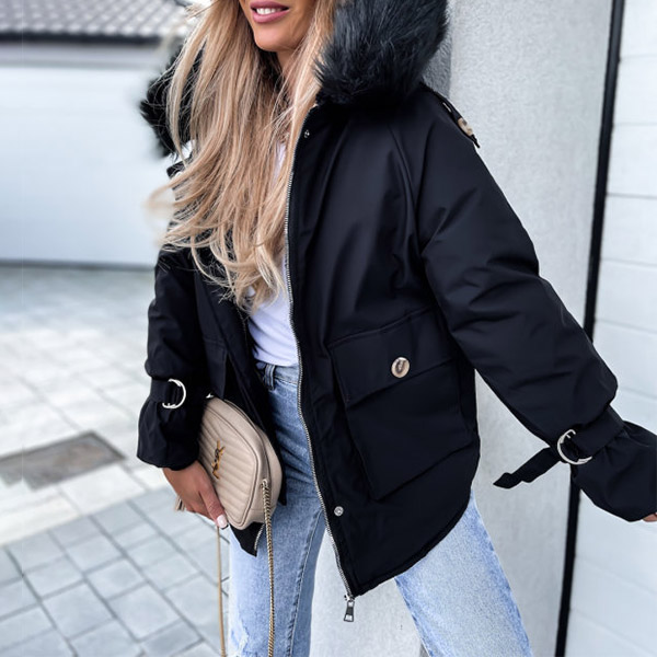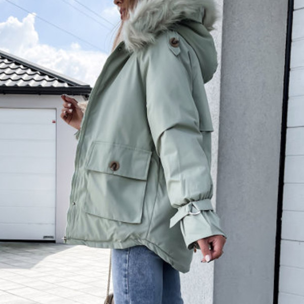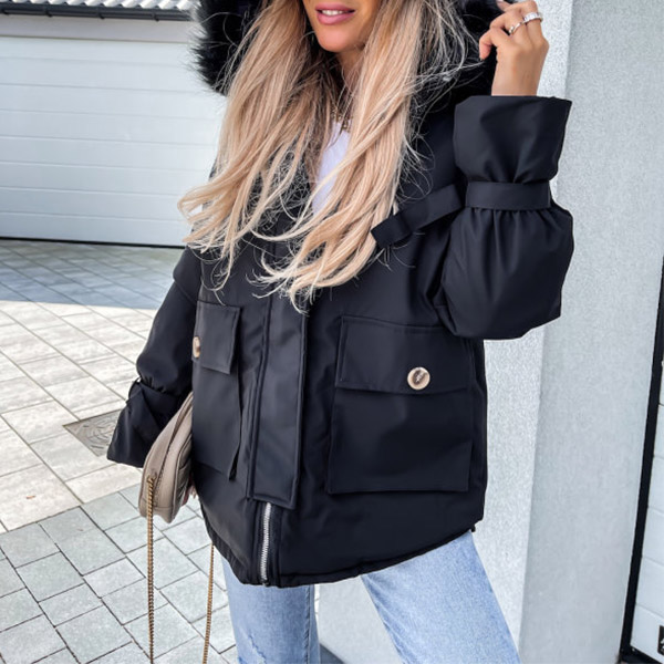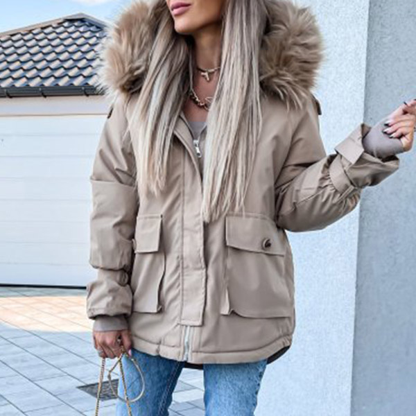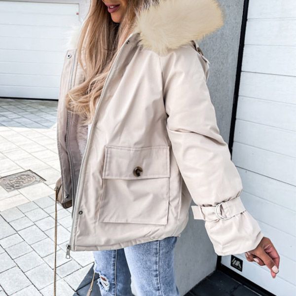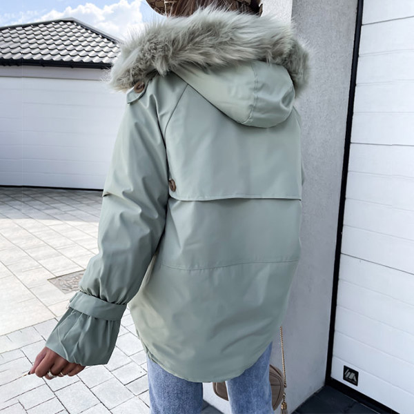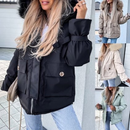 Get into the cold mode with this coat! The hood part with faux fur spliced design will enrich the design style. And the front-pocket design makes it more convenient for holding your belongings. Just add this stylish coat to your winter wardrobe!
