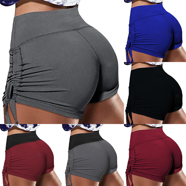 In these hot summer time,this shorts shorts can be your wise choice for your sports time. Crafted from soft,breathable and stretch fabric,this shorts can give you an utmost comfort. And the side-drawstring design will add some extra charm. The fit,tight silhouette design also can shape your seductive hips.