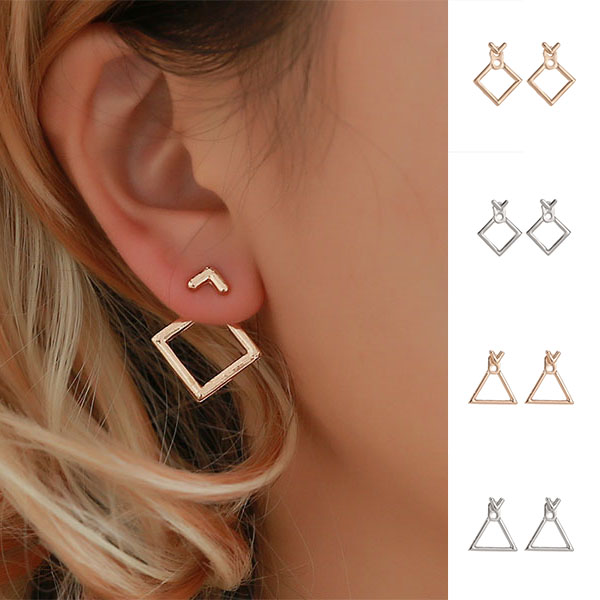 Trust me,these simple style stud earrings can enhance your entire charm. Hollow out square/triangle shaped design makes it look simple yet stylish. When you wanna enrich your daily look,you can consider adding these stud earrings.