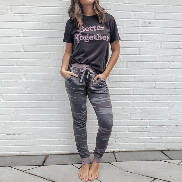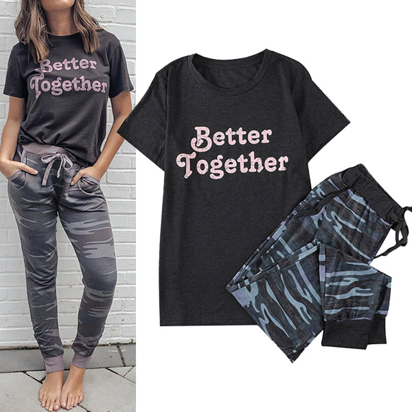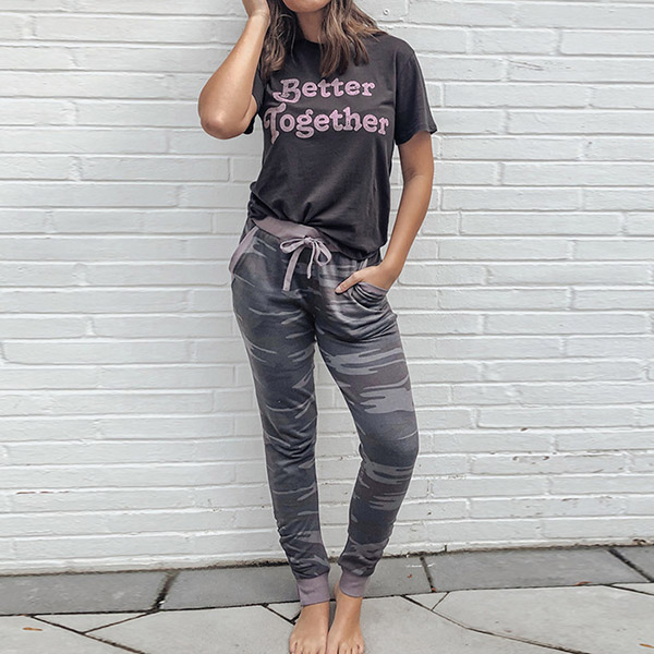 T-shirt + pantalon imprimécamouflage avec lettres de style simple