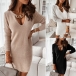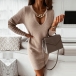 Simple Style Long Sleeve Chain V-neck Solid Color Knit Dress