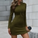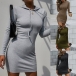 Simple Style Long Sleeve Hooded Solid Color Slim Fit Dress
