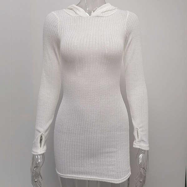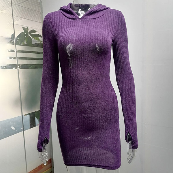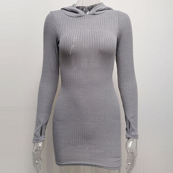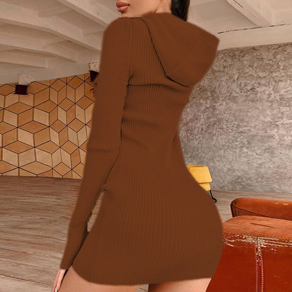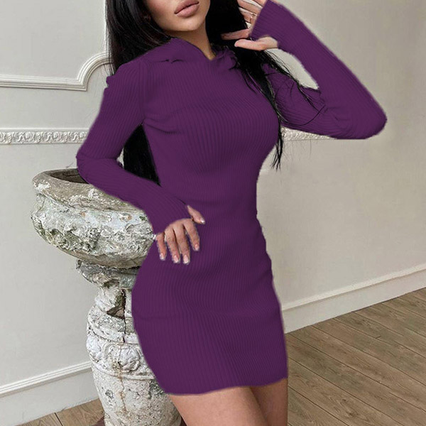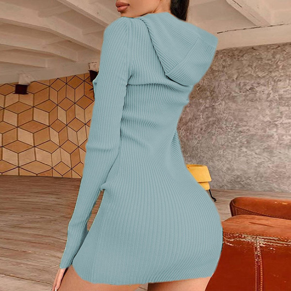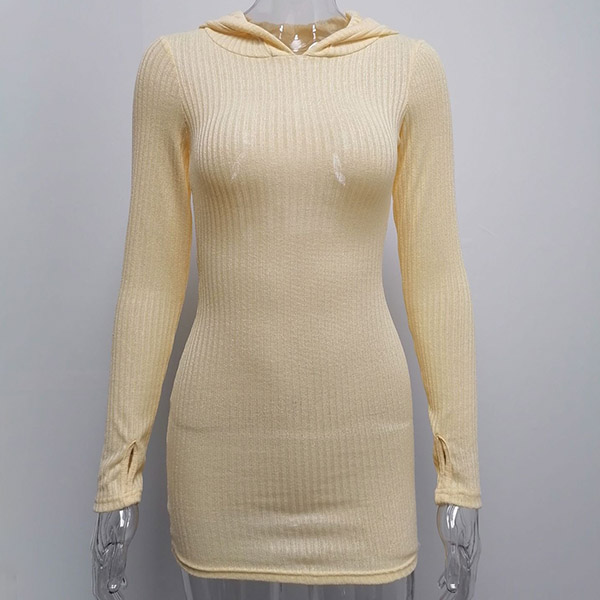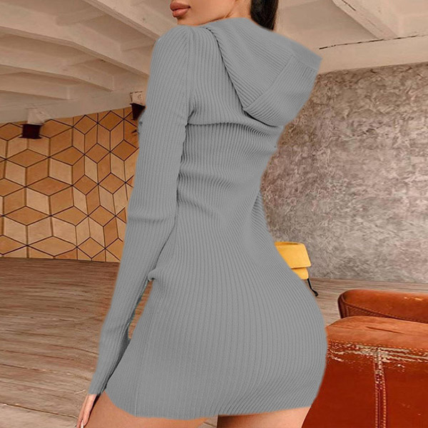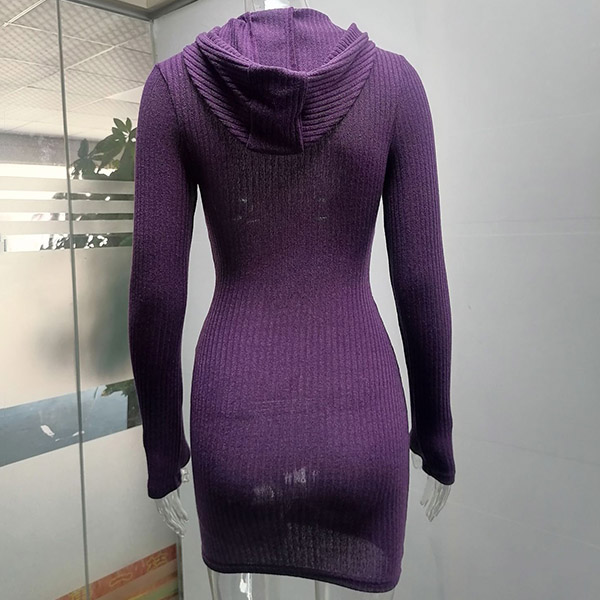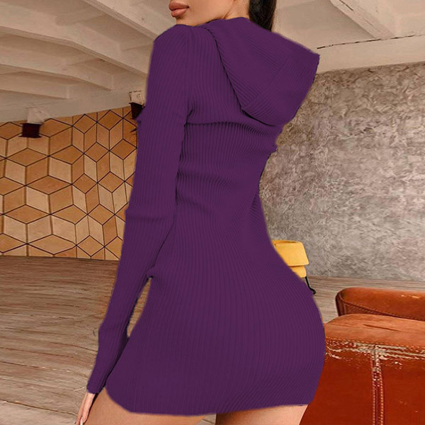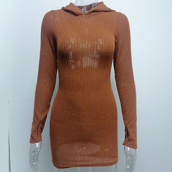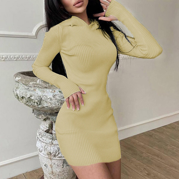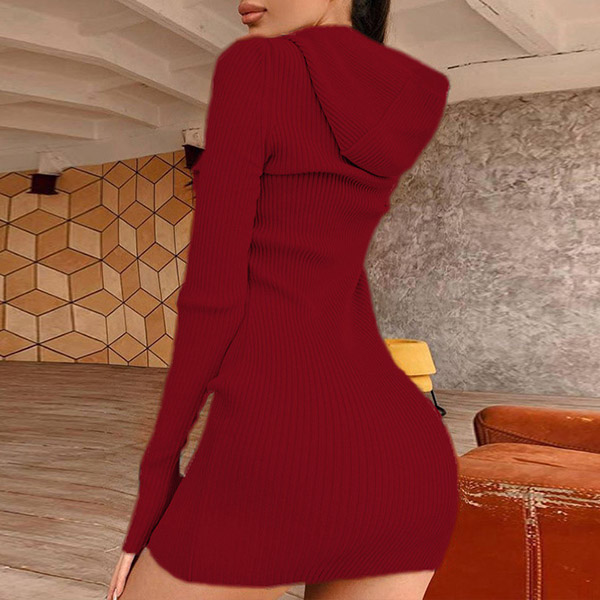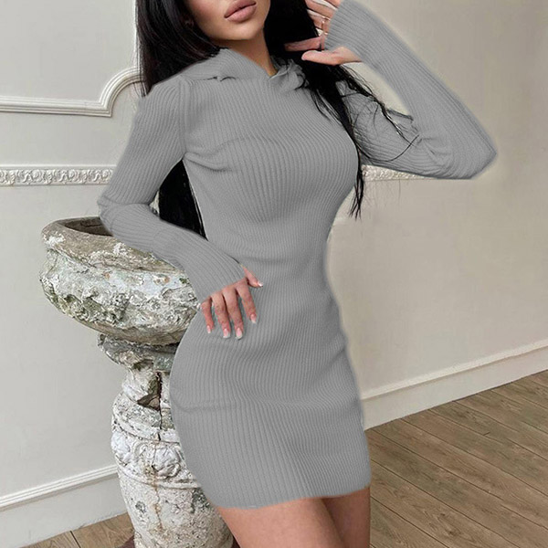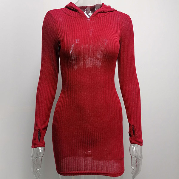 Hey,girls,you can step into the autumn mode by slipping into this knit dress. Solid color tone design makes it look simple yet generous Finished with long sleeve,hooded and a fit silhouette,this dress not only can keep you warm,but also can showcase your slender figure as well as maintain your charm.