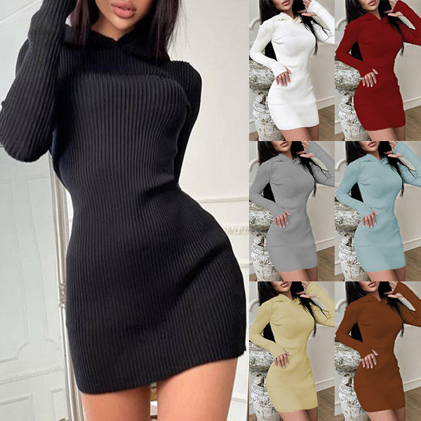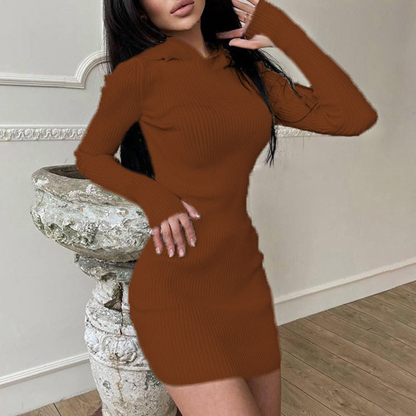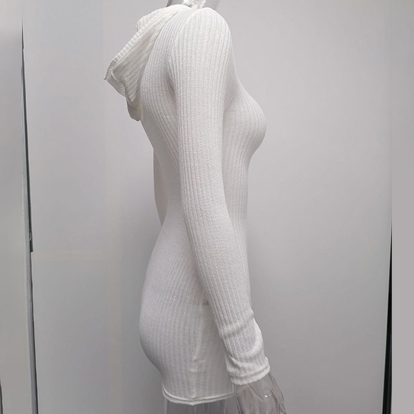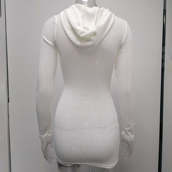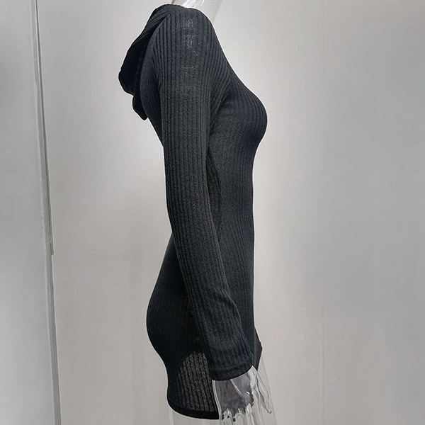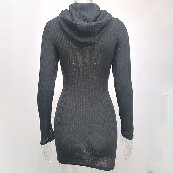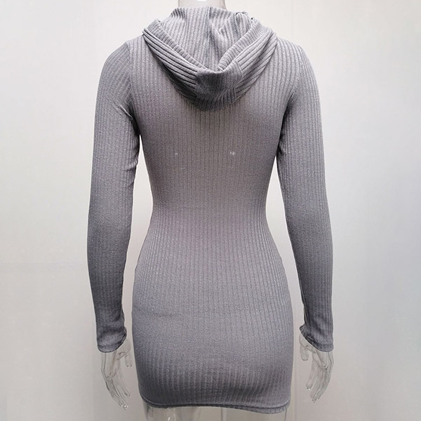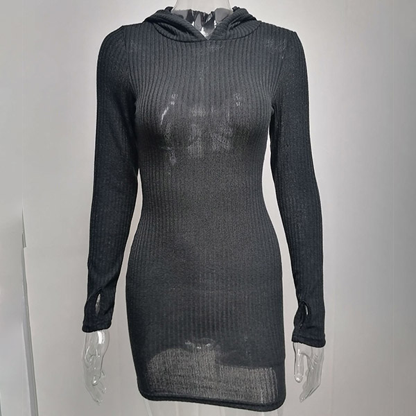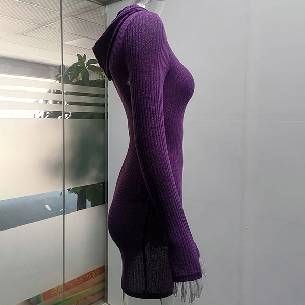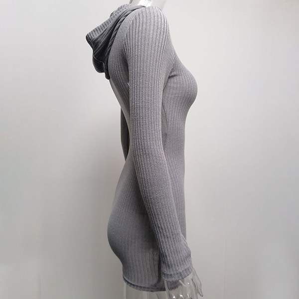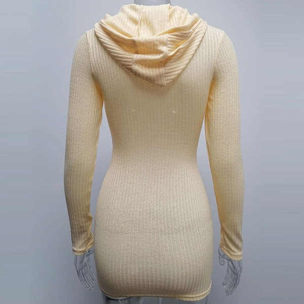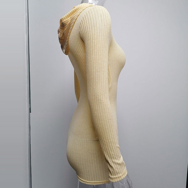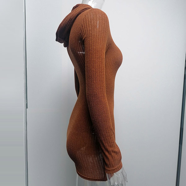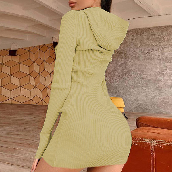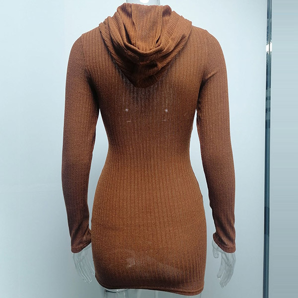 Hey,girls,you can step into the autumn mode by slipping into this knit dress. Solid color tone design makes it look simple yet generous Finished with long sleeve,hooded and a fit silhouette,this dress not only can keep you warm,but also can showcase your slender figure as well as maintain your charm.