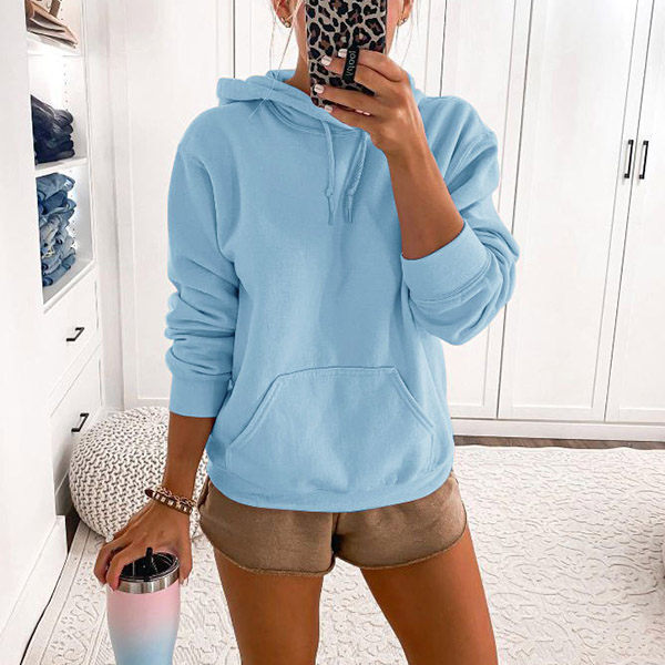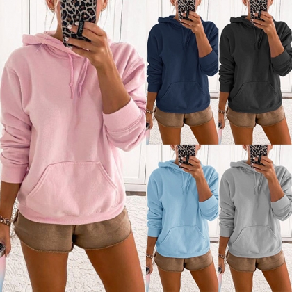 Your autumn wardrobe is not complete if without a sweatshirt. So how about this piece? It boasts a solid color,the long sleeve,hooded silhouette and front-pocket design maintain the classic design style. All-match design allows to be matched with different style bottoms. You can trust in this piece to have a laid-back and fashionable style.