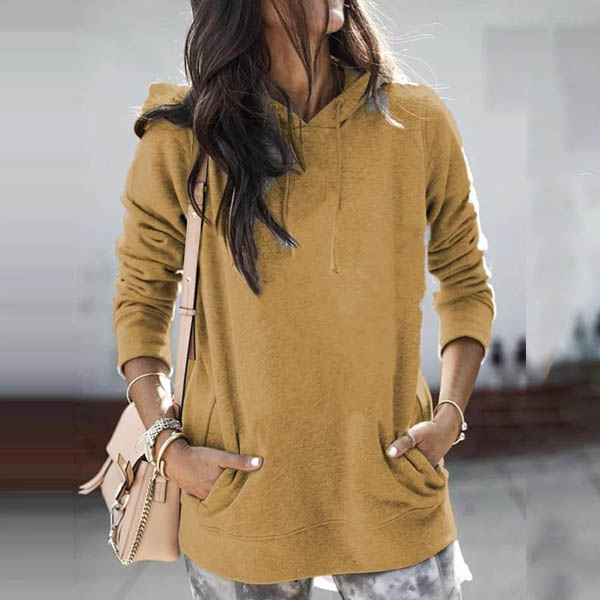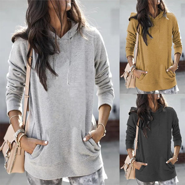 Make your autumn wardrobe more complete by adding this sweatshirt. It boasts a solid color,finished with long sleeve and hooded silhouette,this sweatshirt not only can keep you feeling warm and comfy,but also can offer you a laid-back yet fashionable autumn look.