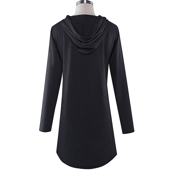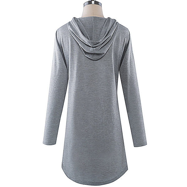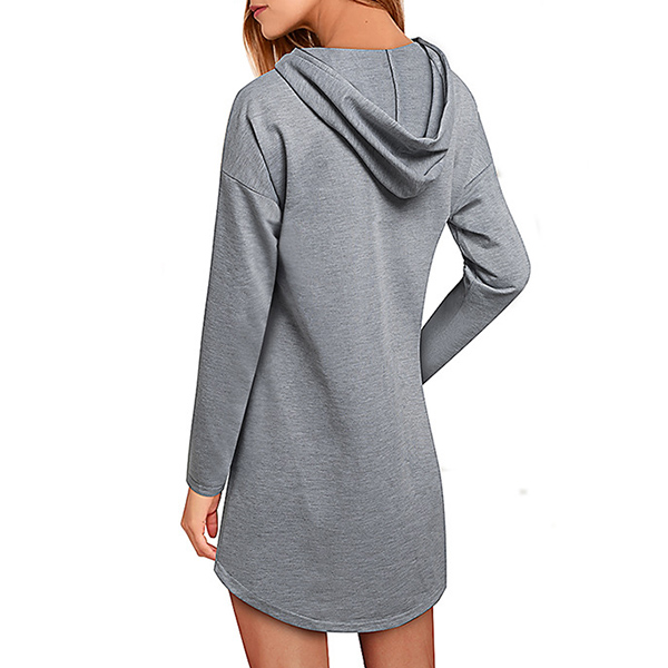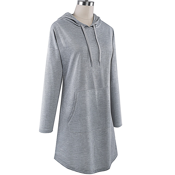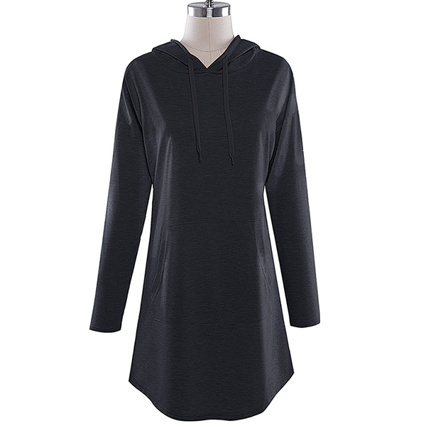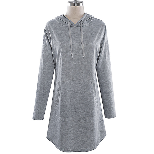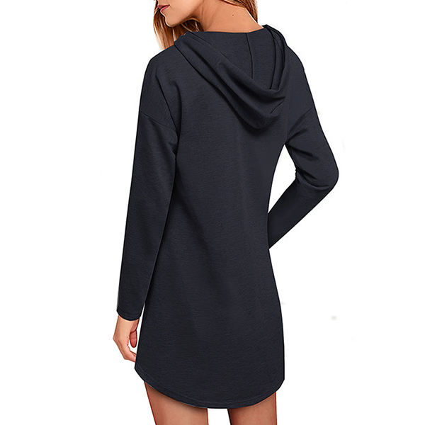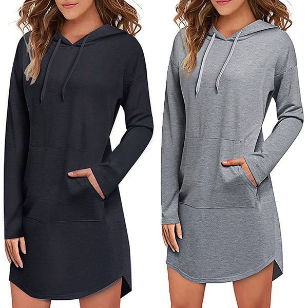 Like simple style piece? Then you can make your eyes focused on this sweatshirt dress. It features a solid color,the arc hem design breaks the dull design style. Finished with long sleeve,hooded silhouette and front-pocket design,this dress is perfect fit for your casual days and weekends.