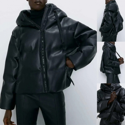 This simple,cozy yet stylish warm coat would be your wardrobe staple in these chilly days. Solid color style,finished with long sleeve and hooded silhouette,this piece bears a simple design style,but it can offer you a cozy yet stylish winter look. Matching with your tight pants would be a good choice.