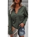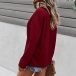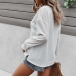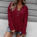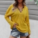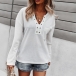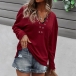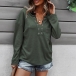 Simple Style Long Sleeve Keyhole V-neck Solid Color Loose T-shirt