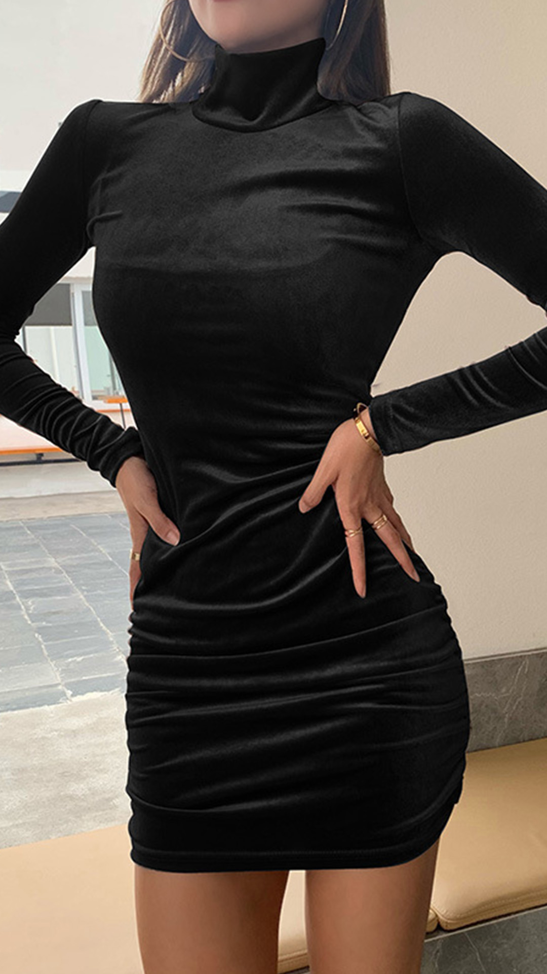 For your spring,autumn and winter days,this versatile bottoming dress would be your perfect choice. Crafted in a solid color,its soft and breathable fabric can give you an all-day comfort. Finished with long sleeve,mock neck and a fit silhouette,this piece also can showcase your slender figure. Different colors for your optional.