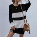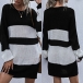 Simple Style Long Sleeve Round Neck Contrast Color Loose Knit Dress