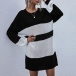 Combines of white and black tone,this knit dress breaks the simple and dull design style. Crafted from soft and cozy knitted fabric,with long sleeve,round neck and a loose silhouette,this dress can give you a comfortable day while it maintains your style.