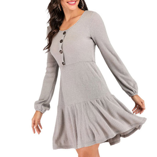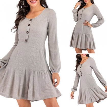 Looks extra stylish and charming with this dress from day to night. Boasts a solid color,finished with long sleeve,round neck and a ruffle hem design,this dress not only can give you a comfortable day,but also can express your style and charm. So why not take interest in it?