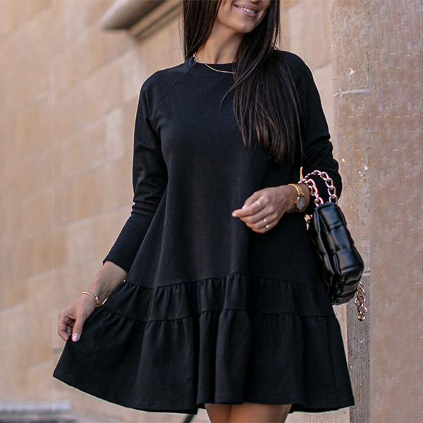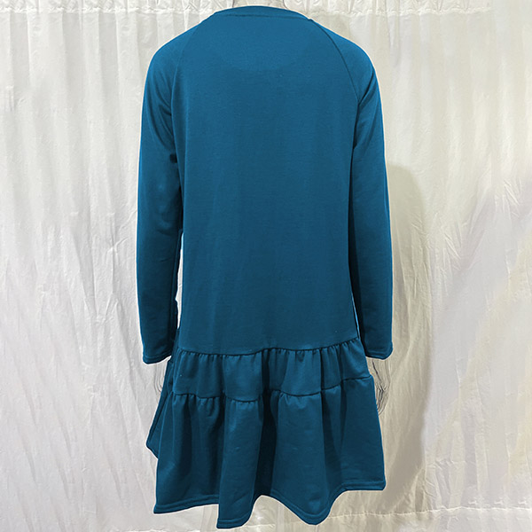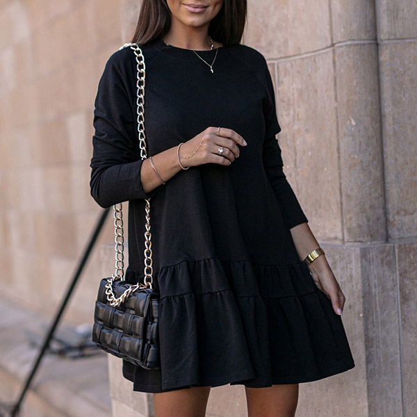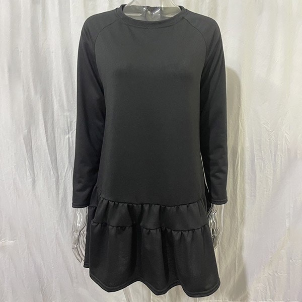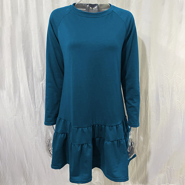 Simple Style Long Sleeve Round Neck Ruffle Hem Solid Color Loose Dress