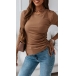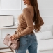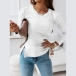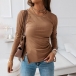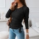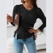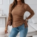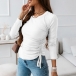 Simple Style Long Sleeve Round Neck Slit Hem Side-drawstring Knit T-shirt