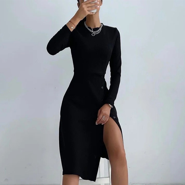 If you like the simple style piece,then you can be attracted by this dress at your first sight. Crafted in a solid color,the slit hem design gives you the chance to flaunt off your slender legs. Crafted from soft and breathable fabric,with long sleeve,round neck and a fit silhouette,this is a dress which can be fit for your different occasions.