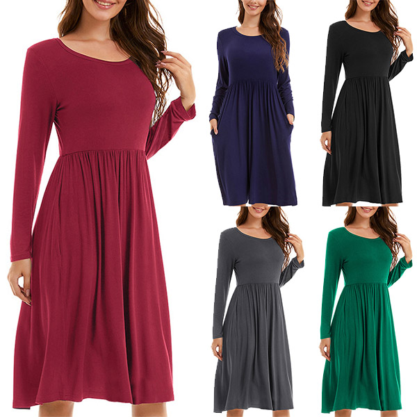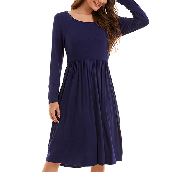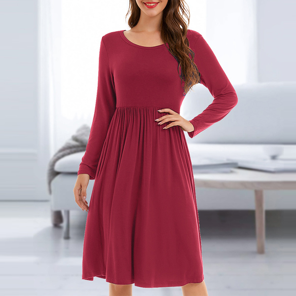 As we all know,simple style piece has become a fashion trend. So why not catch up with this trend with the help of this dress? Solid color style,finished with long sleeve,round neck and high waist design,this dress knows how to give you a cozy yet stylish style.