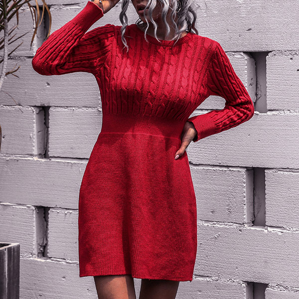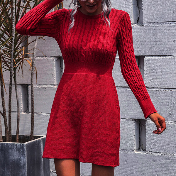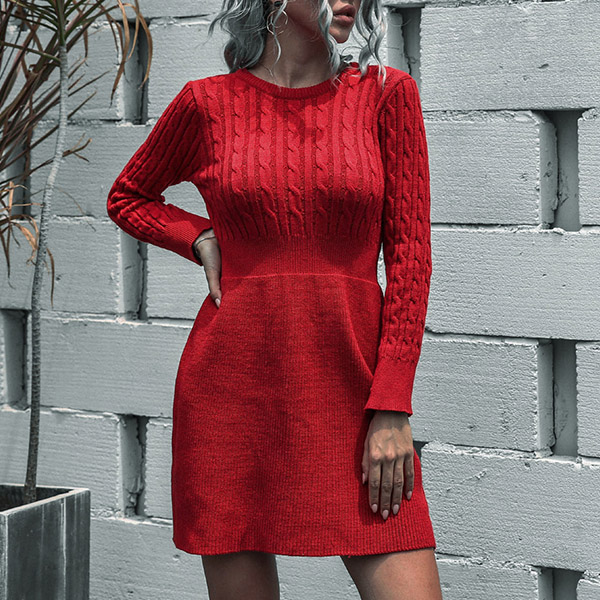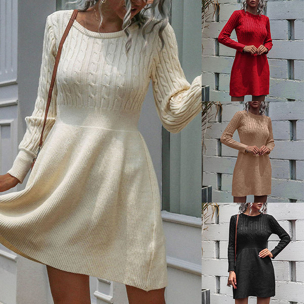 For the breezy days,this knit dress would be your wardrobe staple. Solid color style,finished with long sleeve,round neck and high waist design,this dress not only can showcase your slender figure,but also can offer you a cozy yet warm day. In the spring and autumn days,you can wear it alone,or match with your overcoats in these chilly winter days.