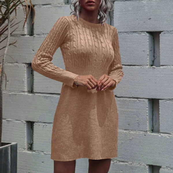 Simple Style Long Sleeve Round Neck Solid Color High Waist Knit Dress