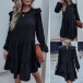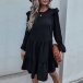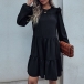 Simple Style Long Sleeve Round Neck Solid Color Loose Ruffle Dress