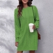 Simple Style Long Sleeve Round Neck Solid Color Loose Sweater Dress