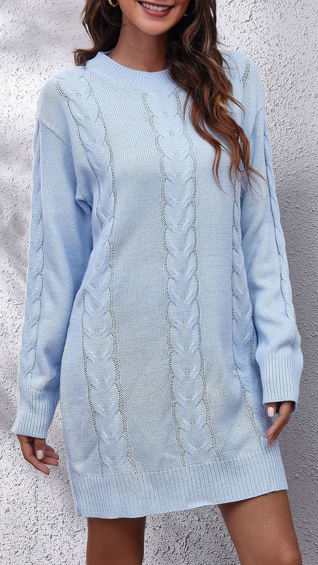 It is a good chance to give your wardrobe a seasonal update by adding this sweater dress. Crafted in a solid color,with long sleeve,round neck and a loose silhouette,this sweater dress is a good weapon to keep the warmth as well as maintain a casual,relaxed and stylish daily style.