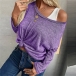 Simple Style Long Sleeve Round Neck Solid Color Loose T-shirt