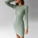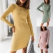 Simple Style Long Sleeve Round Neck Solid Color Slim Fit Dress