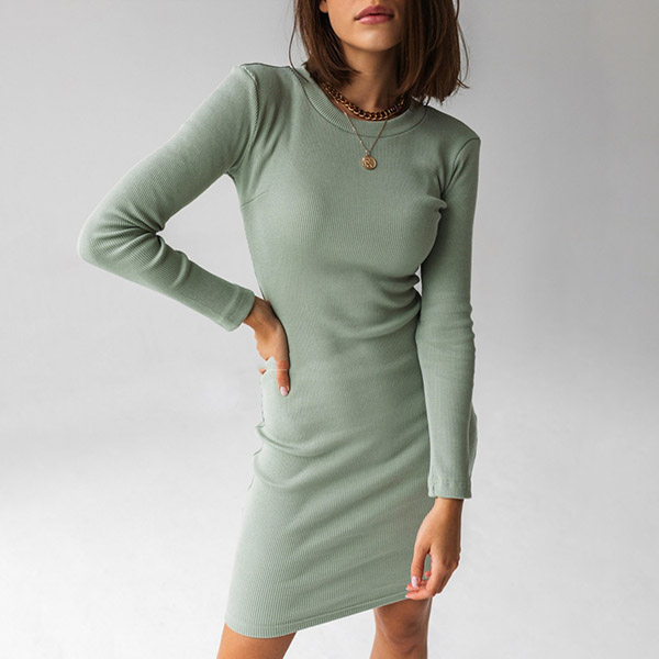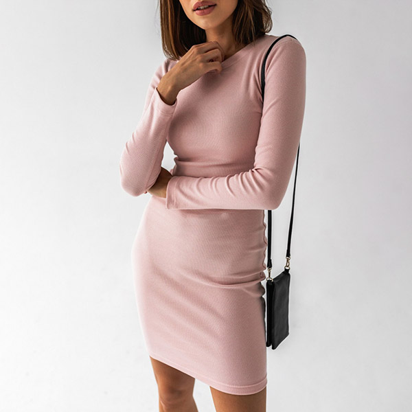 Like simple style dress since it can offer you many matching opportunities? Then you can just make your eyes focused on this piece. Solid color style,finished with long sleeve,round neck and a fit silhouette,this dress can showcase your slender figure while it maintains the comfy and style.