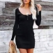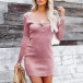 Simple Style Long Sleeve Round Neck Solid Color Slim Fit Knit Dress