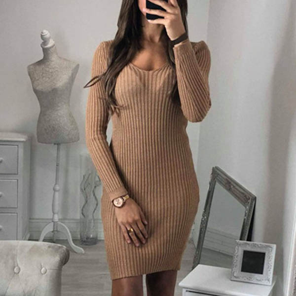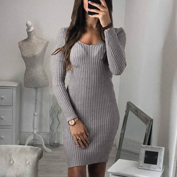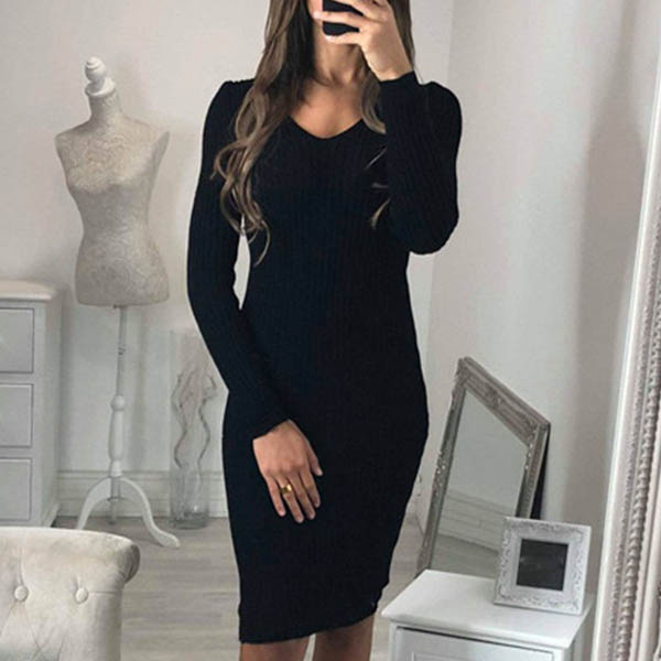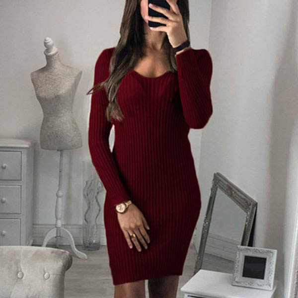 When the weather gets drop,this simple,cozy yet stylish knit dress would strike your mind. Solid color style,finished with long sleeve,round neck and a fit silhouette,this piece bears a simple design style,but it knows how to showcase your slender figure while it maintains the comfy and style.