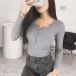 Simple Style Long Sleeve Round Neck Solid Color Slim Fit Knit Top