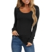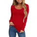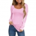 Simple Style Long Sleeve Round Neck Solid Color Slim Fit T-shirt