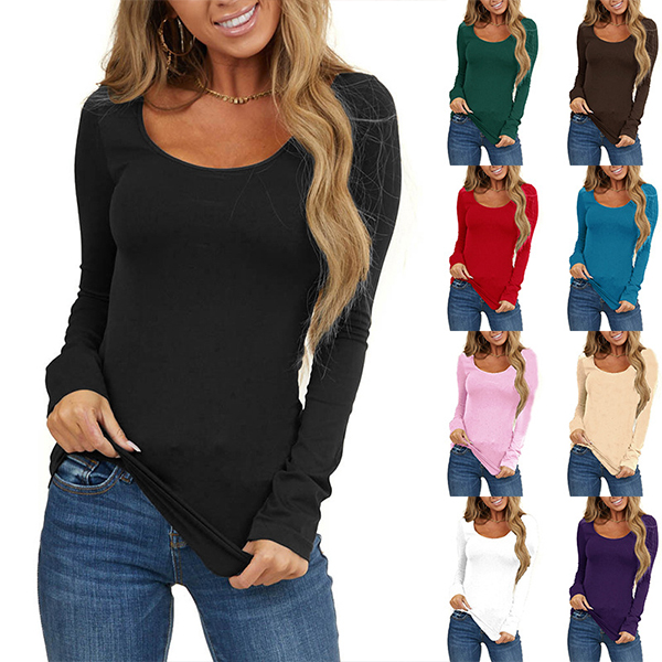 A simple,stylish and all-match t-shirt is an essential for every girl. So might we suggest you choosing this piece? Crafted in a solid color,with long sleeve,round neck and a fit silhouette,this t-shirt not only can give you a long-lasting comfort,but also can offer you many matching styles.