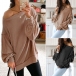 For your autumn days,a simple style sweatshirt is an essential. That's why we suggest you this piece? Boasts a solid color,finished with long sleeve and round neck design,this piece can offer you a laid-back yet fashionable autumn look by teaming with a jeans. Of course you can add a necklace if you feel it looks too simple.