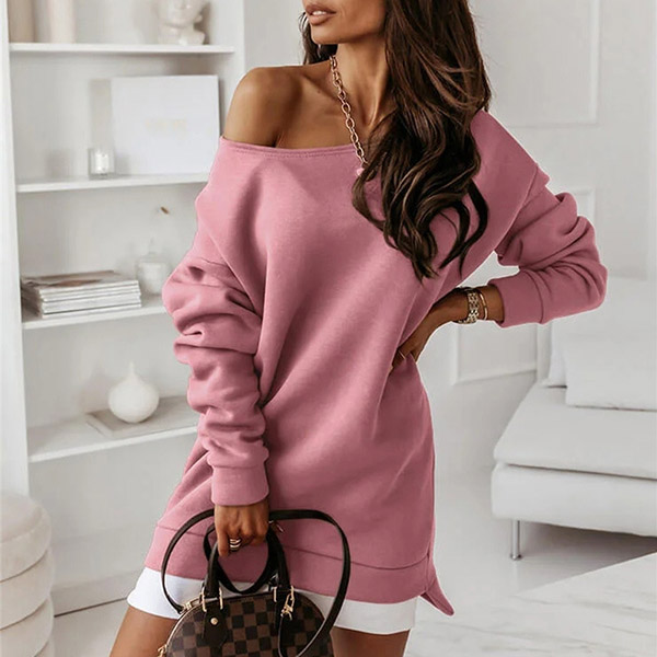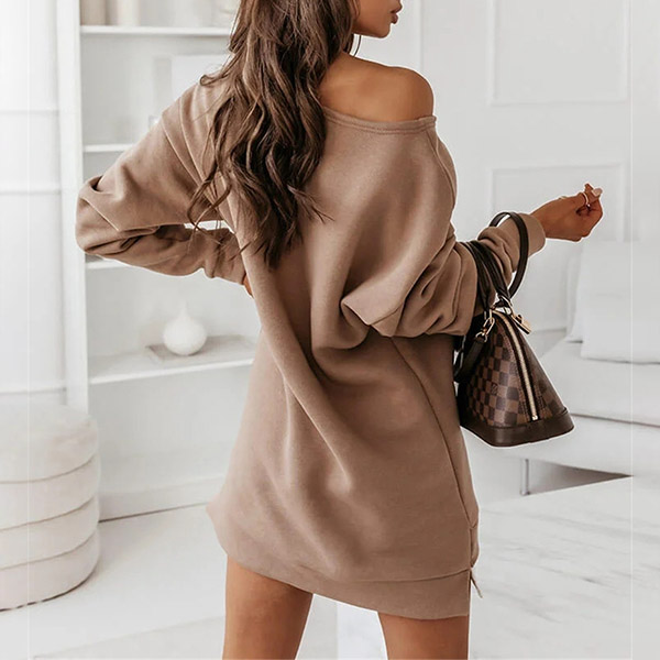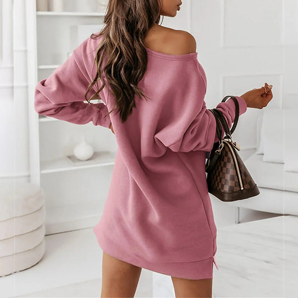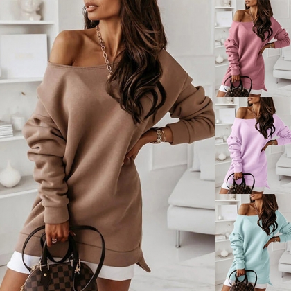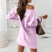 Simple Style Long Sleeve Round Neck Solid Color Sweatshirt Dress