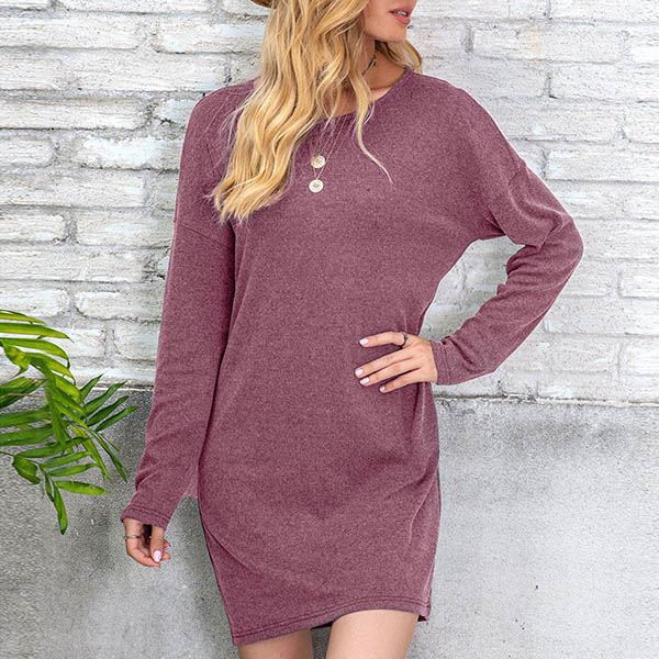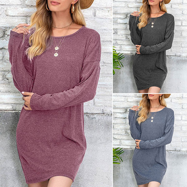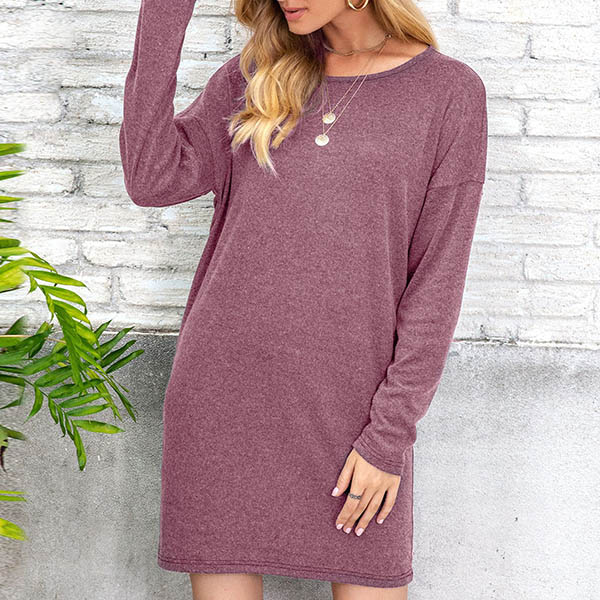 Simple Style Long Sleeve Round Neck Solid Color T-shirt Dress
