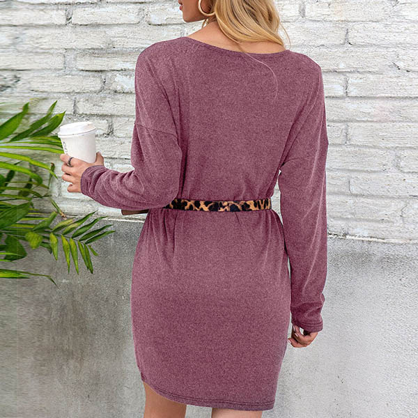 On your rushed mornings,you must have no time to think about what to wear,so we suggest you this t-shirt dress. It boasts a solid color,finished with long sleeve and round neck design,this piece can give you a cozy yet stylish daily style. And the waistband design will add some extra charm. Like it? Then invite this piece to your wardrobe!