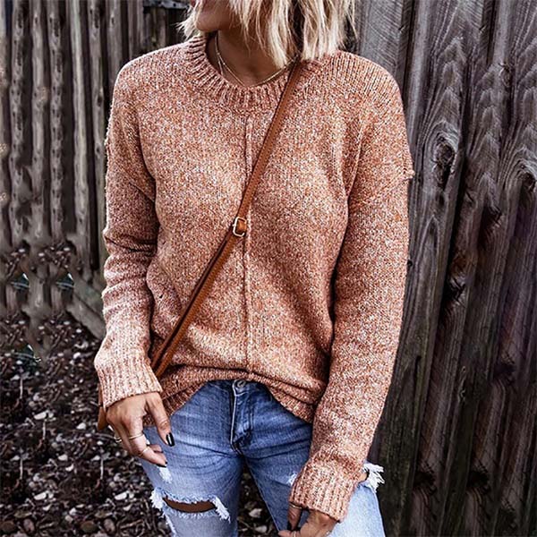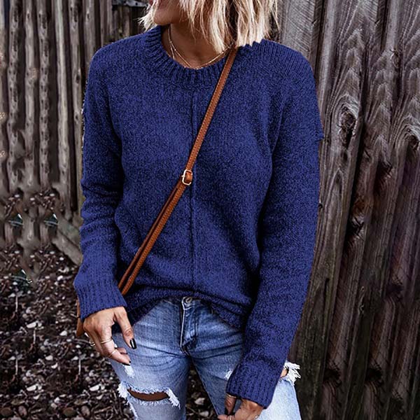 As one of the winter essentials,this sweater is yearning for a place in your wardrobe. It is outfitted with long sleeve and round neck design,this piece that bears a simple design style can keep you warm as well as offer you different matching styles. So why not take interest in it?