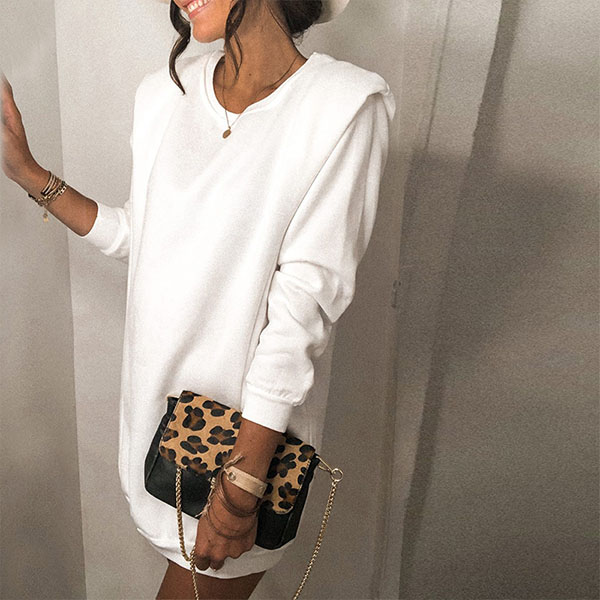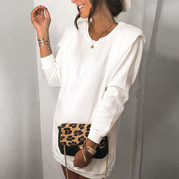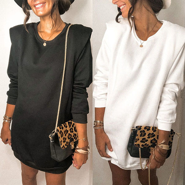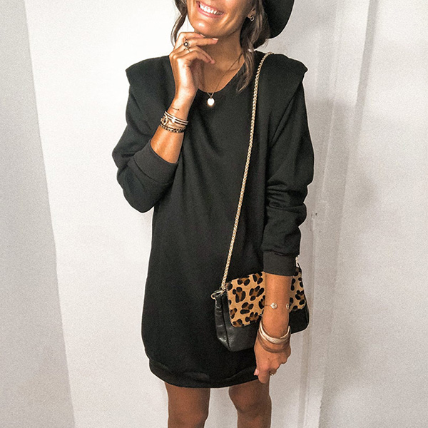In these early autumn days,this sweatshirt dress is just the thing you need. Solid color tone design makes it look simple. Crafted from soft and breathable fabric,with long sleeve and round neck design,this piece can ensure the comfy and style. Like this simple style piece? Then invite this piece to your wardrobe!