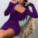Simple Style Long Sleeve Square Collar Solid Color Slim Fit Dress
