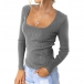 Simple Style Long Sleeve Square Collar Solid Color Slim Fit Knit Top