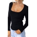 Like the simple style piece? Then look no further than this wonderful top! Solid color style,finished with long sleeve,square collar and a clean,fit silhouette,this piece not only can keep the comfy,but also can be matched with different style bottoms to offer you different fashion styles.